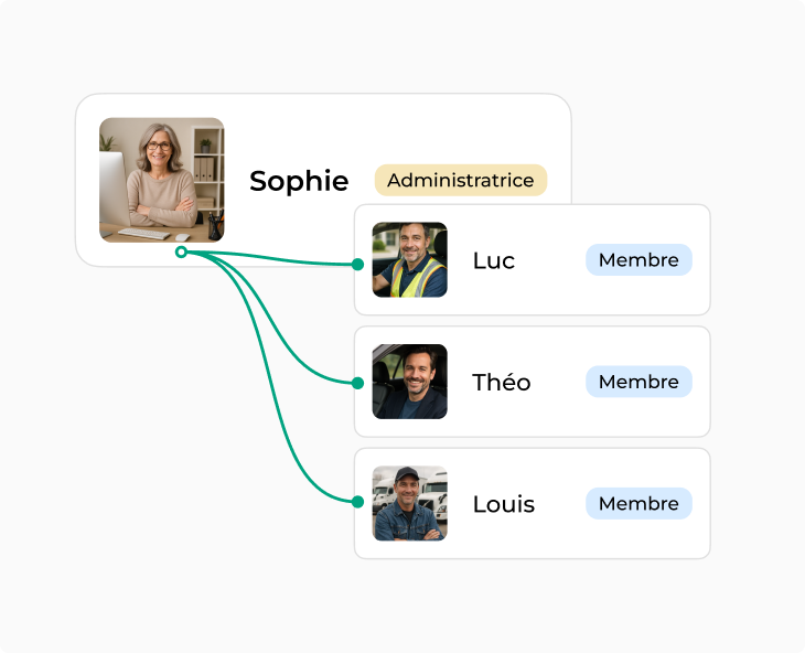 Augmentez ou diminuez votre abonnement au besoin. Avec un même abonnement, vous pouvez attribuer des comptes gratuits aux managers et des licences payantes aux conducteurs. Chaque licence peut être réattribuée.